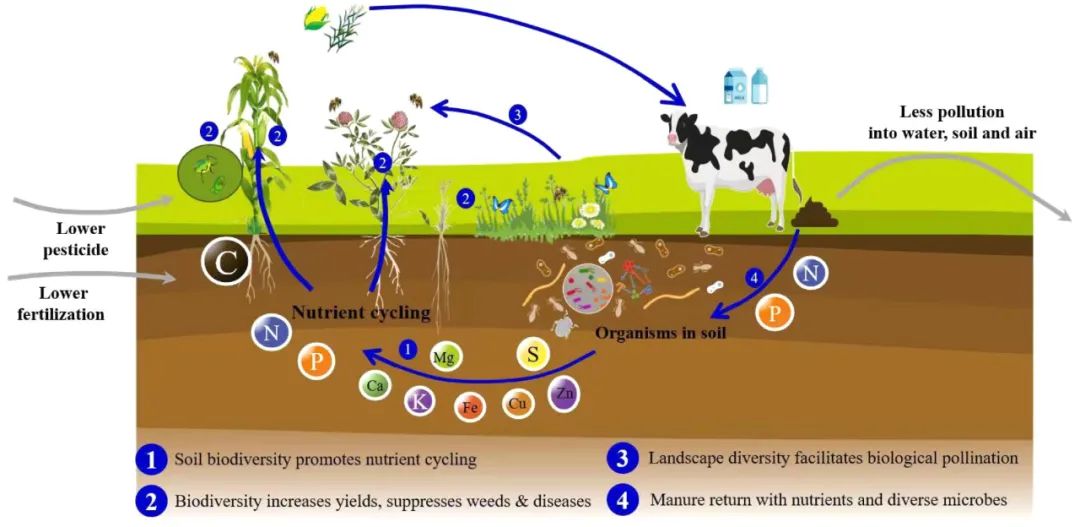 1. 健康牛场的植物和土壤生物多样性需要减少农业化学品投入。