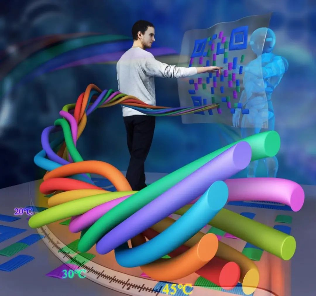随着信息交互在人类日常生活中占据着越来越重要的角色,作为人与外部环境沟通交流的第一媒介:交互界面,正在朝着无感化、多感知、可显示、可对话的方向发展。柔性交互界面的发展使得人们对变色纤维/织物的研究产生了极大的兴趣。色彩作为人类生活中重要的信息展示形式之一,如果纤维器件本身的颜色能够响应外部信号而发生特定的变化,则既可以实现对环境信号的感知,又可以实现对环境信号的显示。