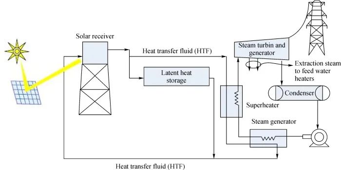 图2 蒸汽朗肯循环集中太阳能热电厂示意图