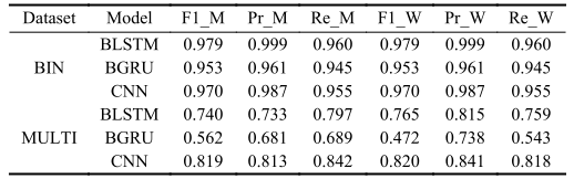 表1 DATA-BIN和DATA-MULTI的评价结果