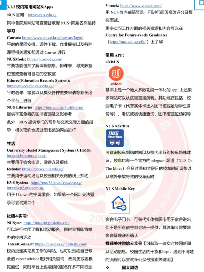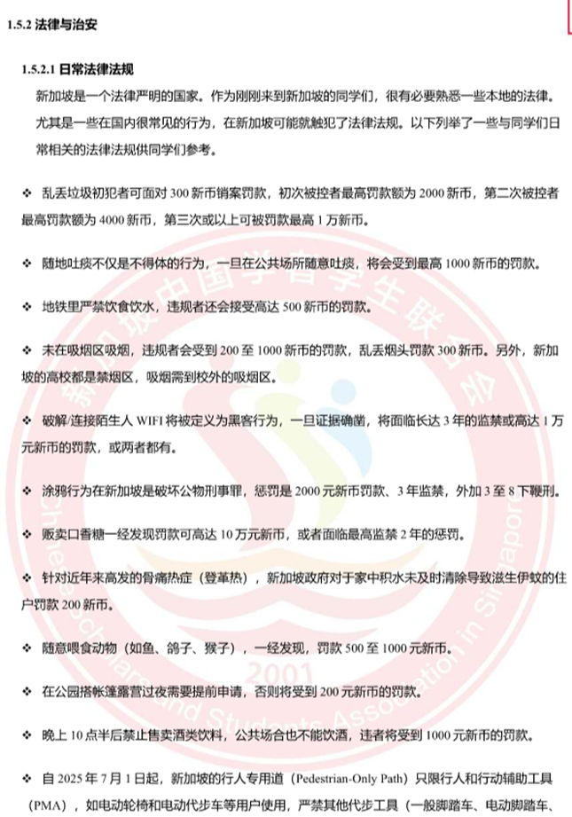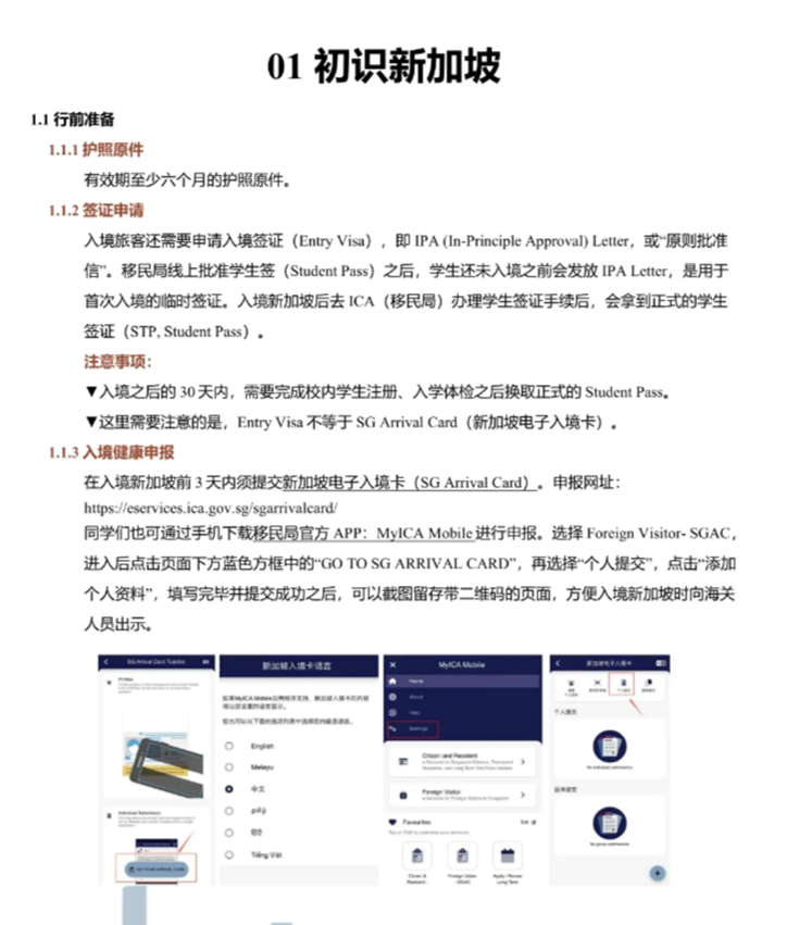 手册集合了入境、日常生活、法律与治安等方面的实用信息。希望同学们能从中获得必要的信息,以更加自信和开放的心态,迎接在新加坡的学习和生活。