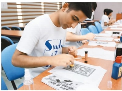 让学生们体验以汉代瓦当为主题的拓印技艺也是此次活动的重要环节。来自巴基斯坦的阿韦斯一边蘸着墨水轻拍拓板,一边介绍道:“这是我第一次体验拓印,真有意思。”