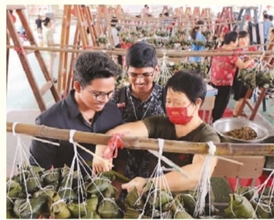 来自印度尼西亚的陈奕桦说:“通过这次活动,我不但学会了包粽子,而且对中国社区有了不一样的感受,跟乡邻们吃饭、聊天是非常开心的事。同时,我也感受到了中国民众的善良和热情。“