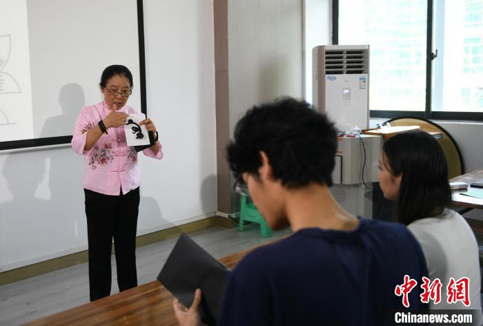 图为老师为留学生讲解剪中国大熊猫图案的方法。中新网记者 周毅 摄
