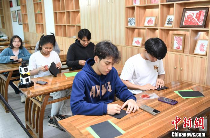 图为留学生在重庆学习剪纸技艺。中新网记者 周毅 摄
