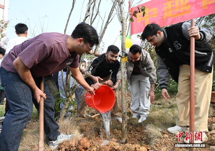 3月14日,200余名中外青年在广西百色挥锹培土、共植绿苗,为春日百色大地添绿,为中越友谊添彩。