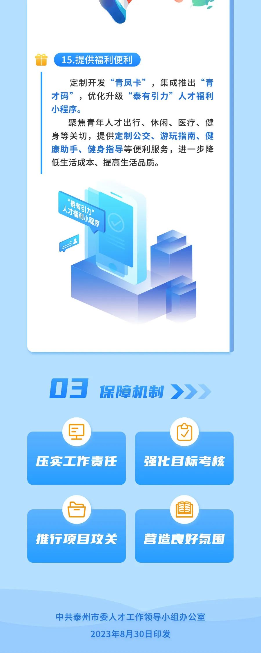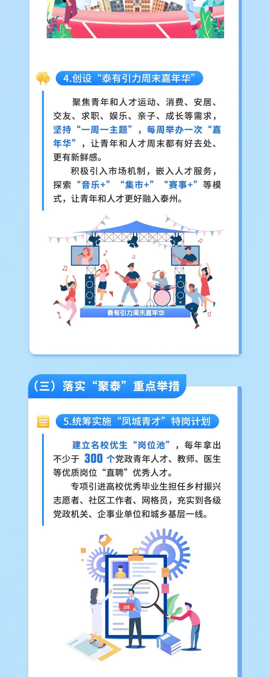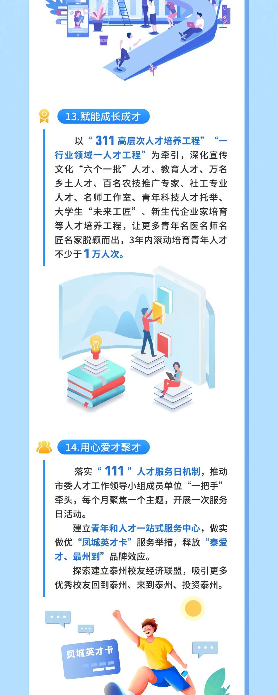 8月31日,全市青年和人才友好型城市建设大会隆重召开,会上发布了《青年人才“聚泰”三年行动计划》,围绕高校毕业生来泰、回泰、留泰落实系列推进措施,力争3年新增15万人。具体内容如下,一图读懂↓↓↓