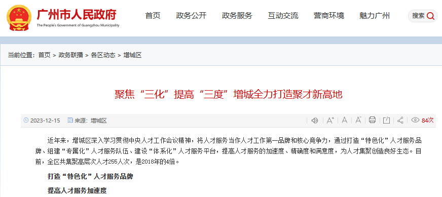 近日,广州市增城区发布《聚焦“三化”提高“三度”增城全力打造聚才新高地》,总结增城区打造聚才新高地工作措施及成果。