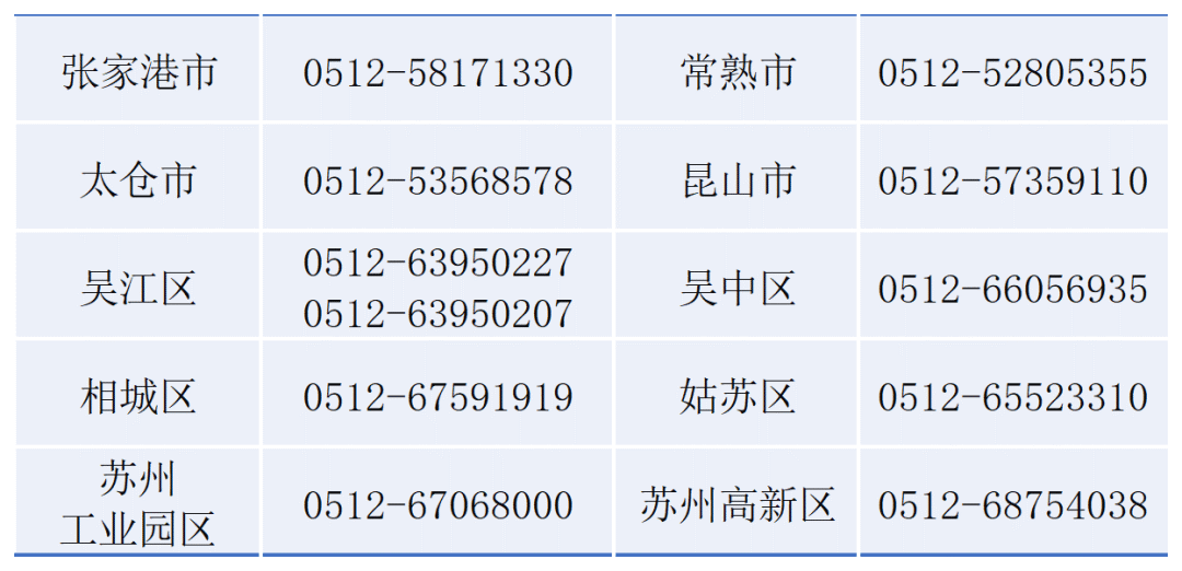 2.苏州市人力资源和社会保障局:0512-65811070、69820110;