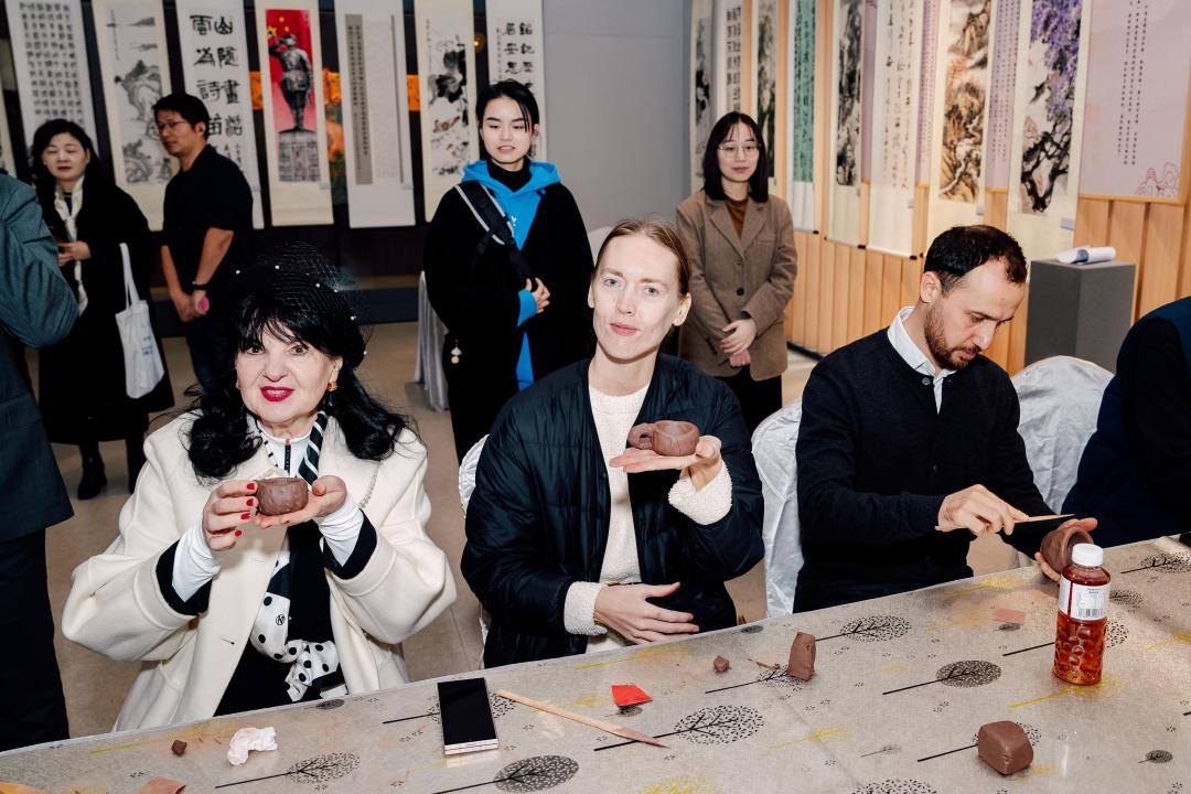 活动上,外国人才体验了陶艺、剪纸、茧艺胸针、书法等中国传统文化。电子科技大学长三角研究院(湖州)科技人才里亚兹来自巴基斯坦,他展示着自己的剪纸作品,分享心得:“感觉剪纸很难,但是是一次美好的体验,希望有机会再和家人来体验。”