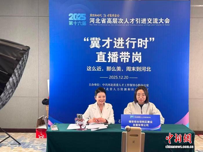 12月20日,第十六届“河北省高层次人才引进交流大会”在河北石家庄举办,企业通过网络直播发布招聘信息。 赵丹媚 摄