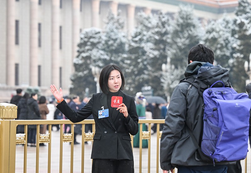 3月5日上午,十四届全国人大四次会议在人民大会堂开幕。会前,本报特派记者周尤正在录制视频。记者 龙帆 摄