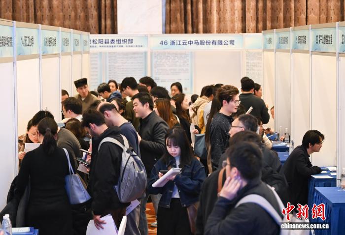 3月15日,不少求职者参加高层次人才洽谈会。当日,2026年浙江省高层次人才洽谈会暨“留·在浙里”海外高层次人才招聘会在杭州举办,当地众多省级实验室、科研院所、龙头企业等推出的3400余个岗位吸引海内外人才,其中近七成求职者为博士。中新社记者 王刚 摄