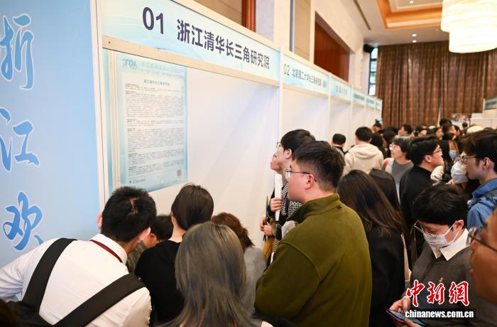 3月15日,浙江清华长三角研究院招聘吸引求职者。当日,2026年浙江省高层次人才洽谈会暨“留·在浙里”海外高层次人才招聘会在杭州举办,当地众多省级实验室、科研院所、龙头企业等推出的3400余个岗位吸引海内外人才,其中近七成求职者为博士。中新社记者 王刚 摄