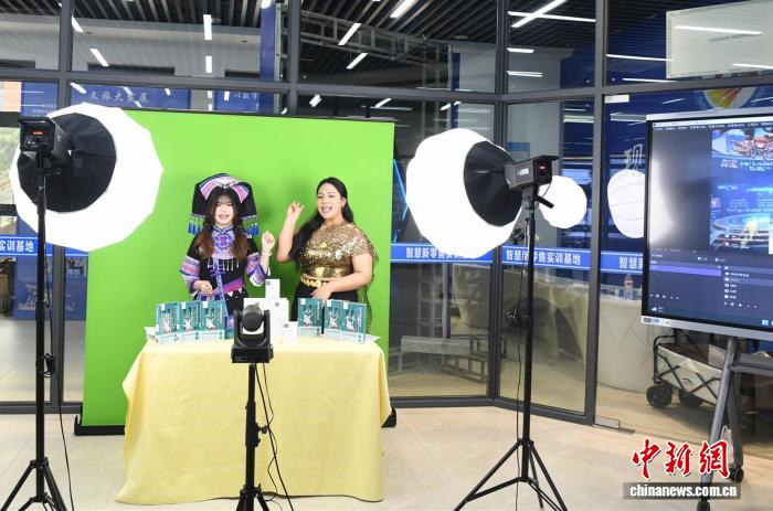 图为中外主播携手在直播间推介产品。林浩 摄